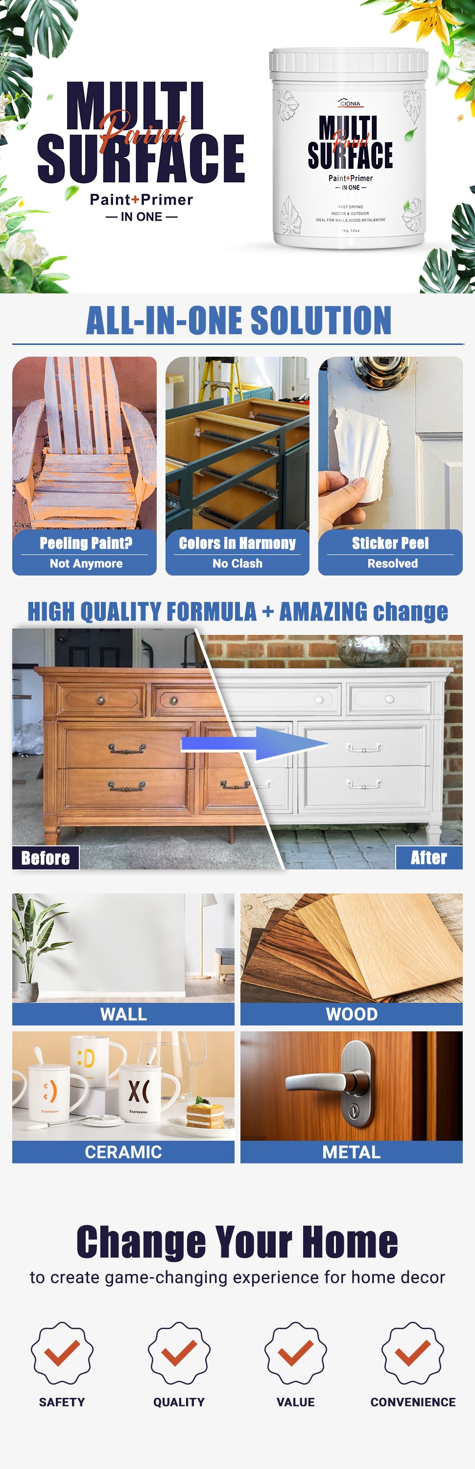- Unique water-based formula; Compared with traditional paint, our water-based furniture paint has little odor, no long-time ventilation is required.