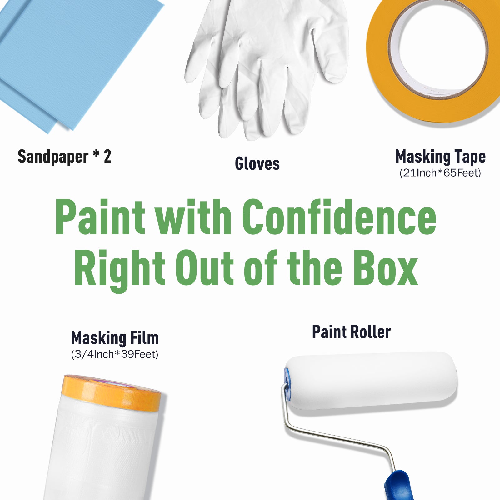 - Construction kit - We are equipped with a complete set of paint tools, inclusding a bucket of frosted glass paint, masking tape * 1, masking film * 1, paint roller * 1, sandpaper * 2, gloves * 1, and all the necessary tools - is very easy to operate, even for a beginner.