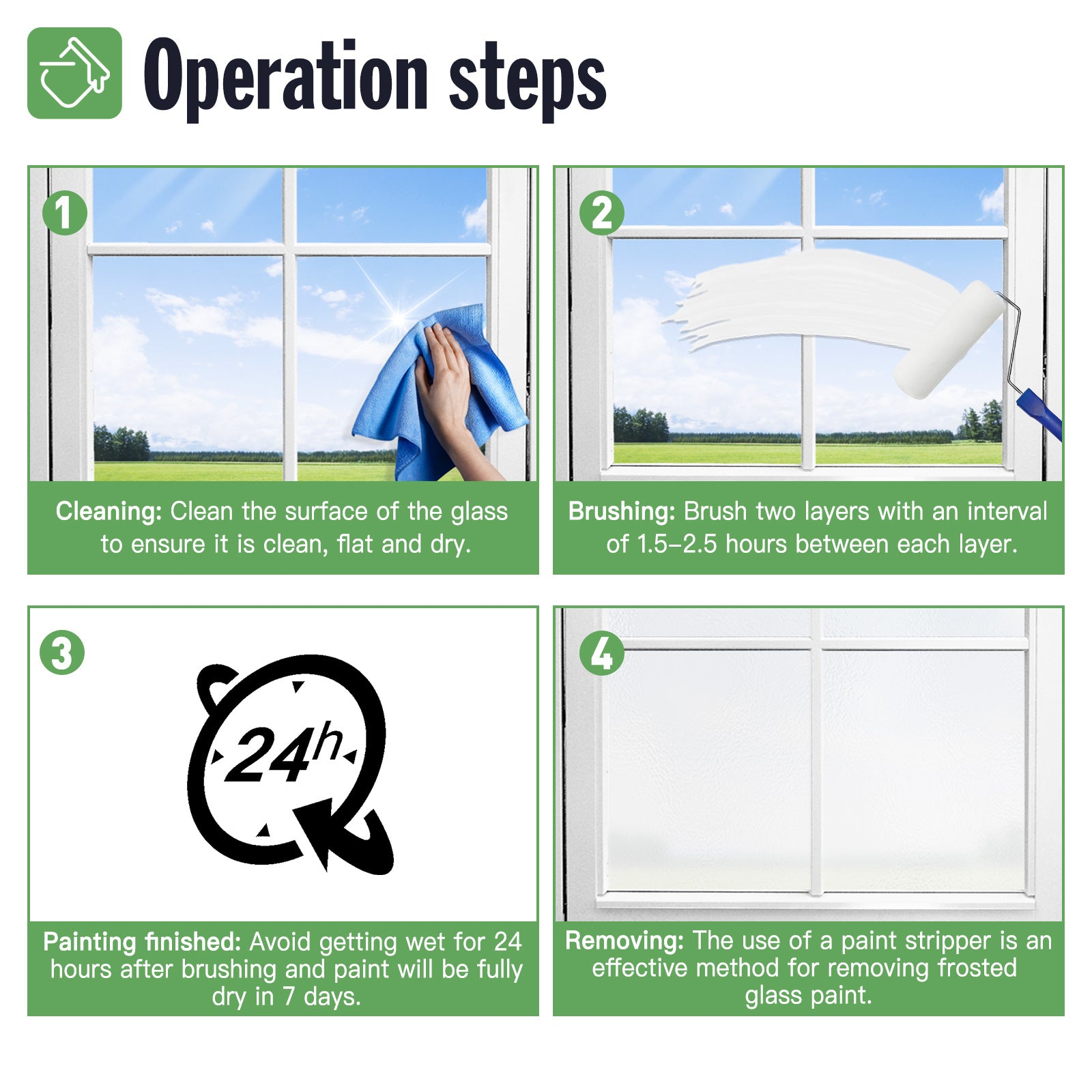 - High quality - DWIL frosted glass paint is waterproof, colorfast, and strong adhesion. For long-lasting effect, wait 1.5 hours after applying the first coat before applying the second coat, and be sure not to touch water for 24 hours.
