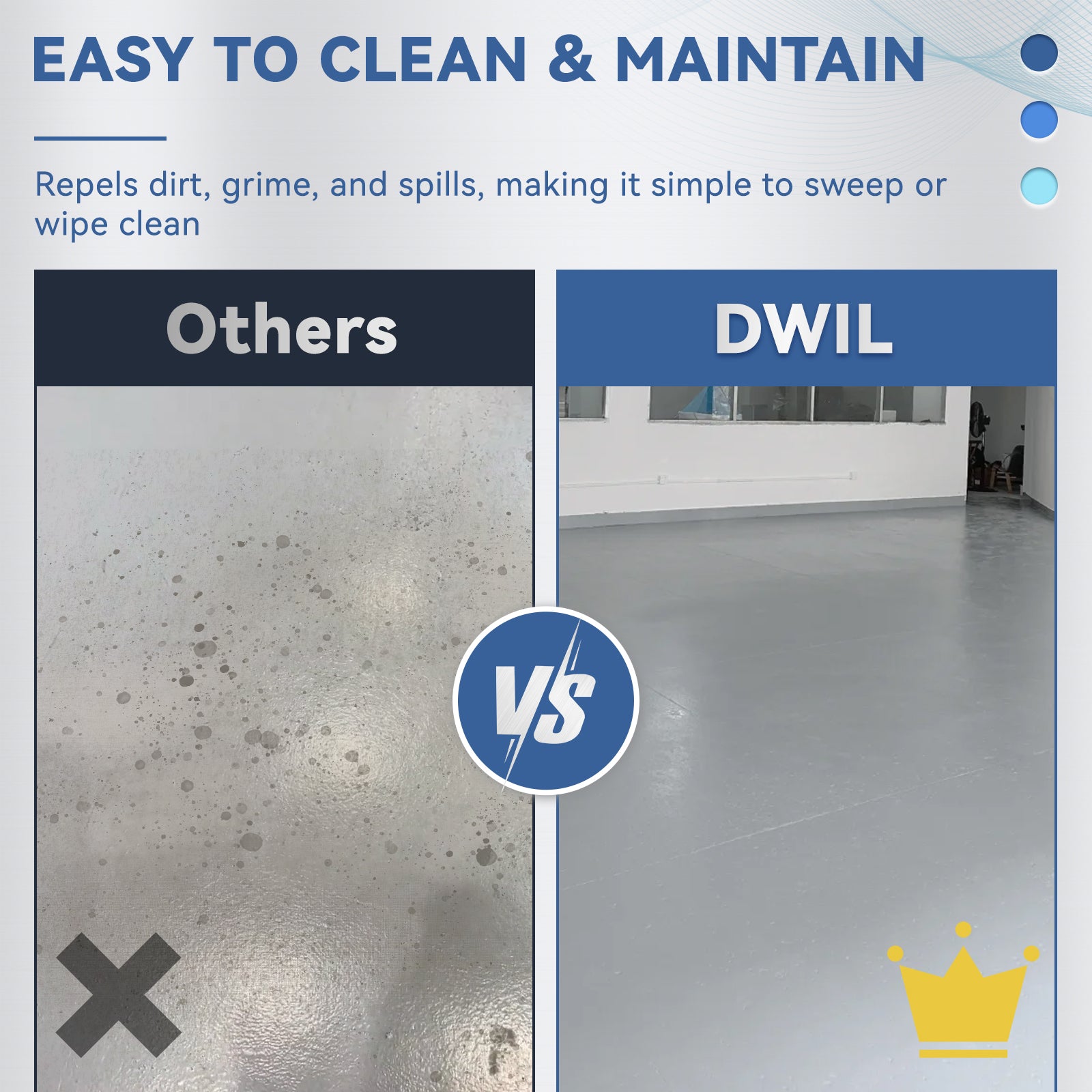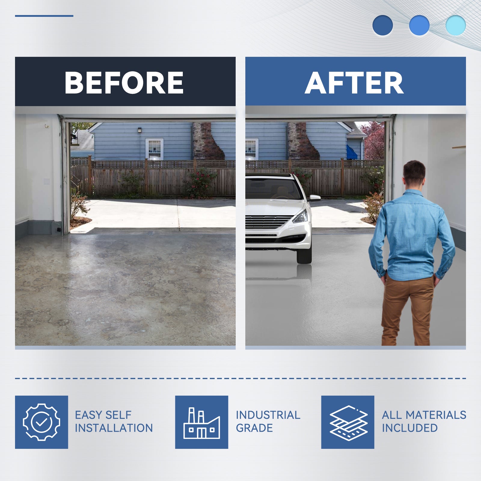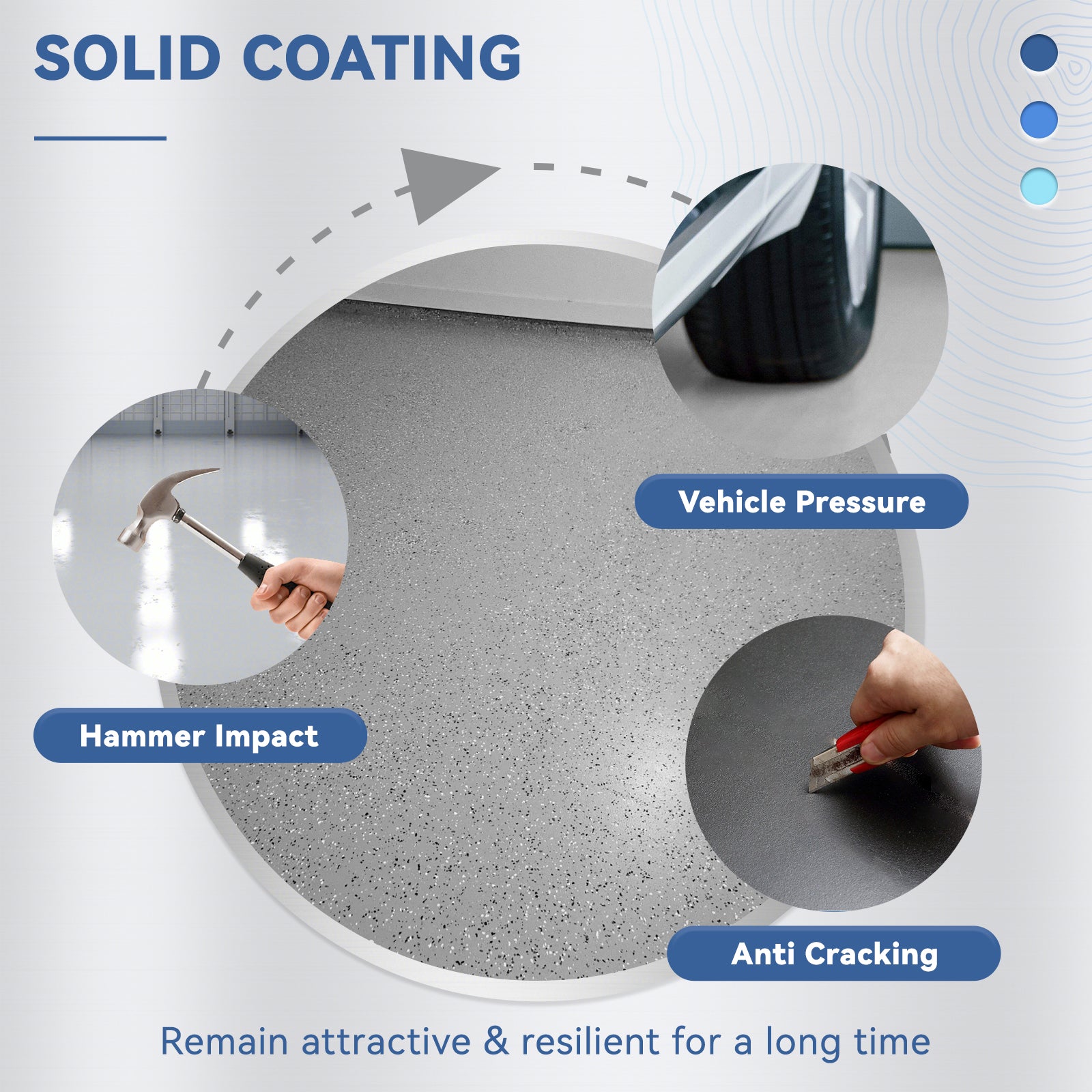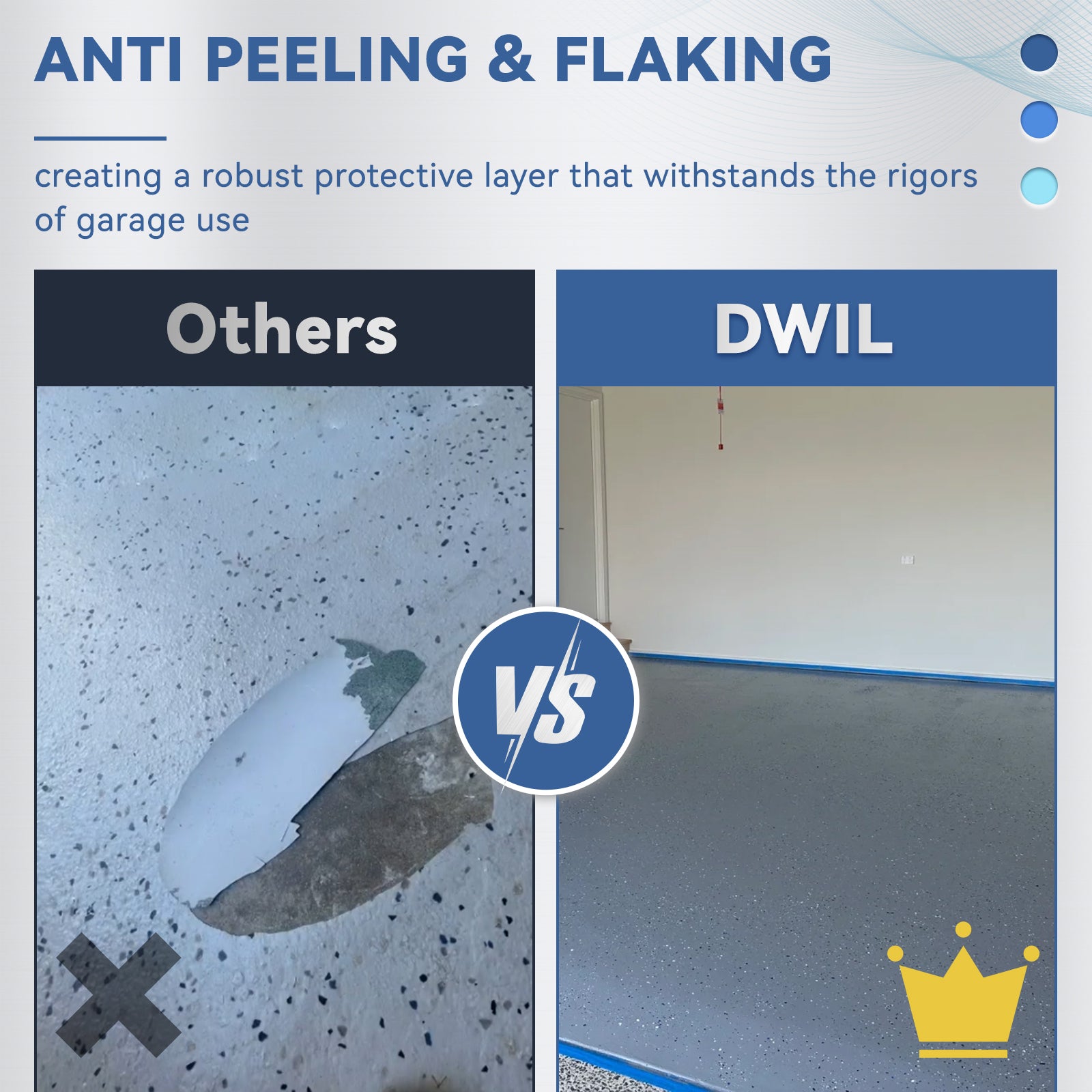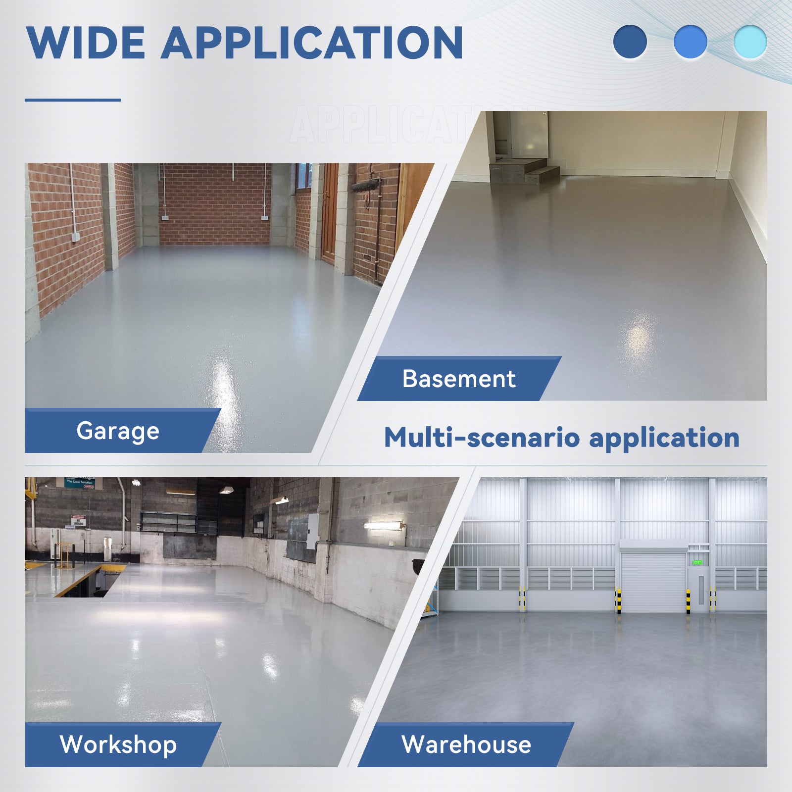 - 【Durable & Glossy Finish】Enhance the look and longevity of your floors with a high-gloss, crack-resistant, and peel-proof coating. Our floor epoxy kit for concrete is designed to withstand the demands of daily use, including resistance to tire overheating, making your garage floor covering remains attractive and resilient for years to come.