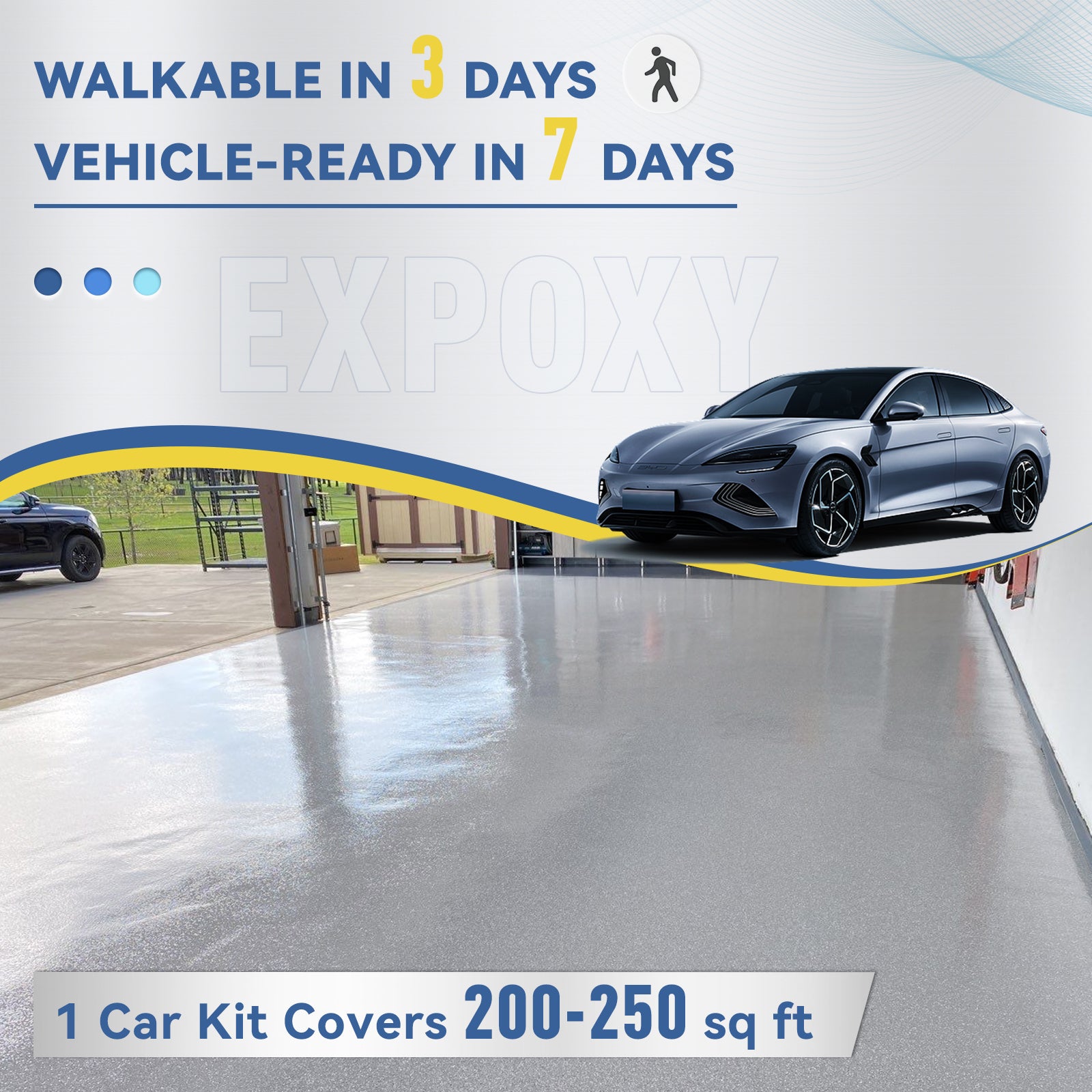 - 【Fast Drying Time & Wide Coverage】With our quick-dry technology, the garage paint sets within 2-3 hours, allowing you to walk on it after just 3 days and park vehicles safely after 7 days. Covering up to 250 square feet per kit, it's perfect for transforming garage floors, basements, and indoor spaces. Note: The garage floor coating is not suitable for carports or areas exposed to direct sunlight.