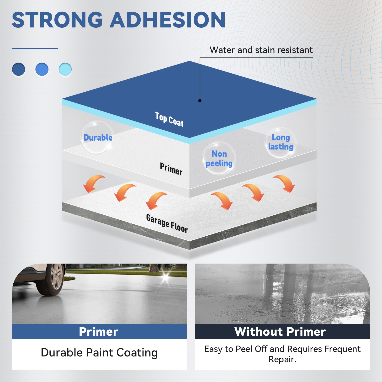 - 【Extra Primer Included】In addition to the water-based garage epoxy floor paint, we include an extra primer for you. The primer enhances adhesion, making the coating more durable and long-lasting. This extra step in the application process makes all the difference, giving you a floor that stands up to wear and tear over time.