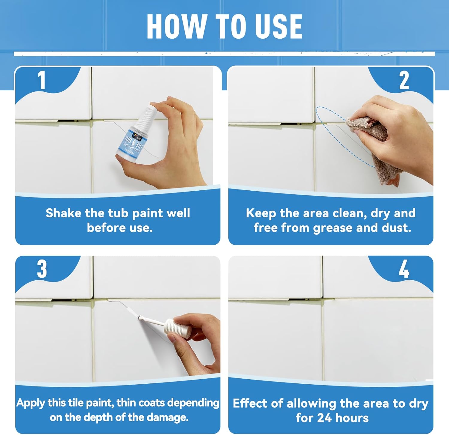 - Gentle Formula - Our bathtub paint is formulated with a high quality wate based acrylic formula, low odor, quick-drying, non toixc, washable, stain and high adhesion, making this tile paint safe for adults, children, and pets.