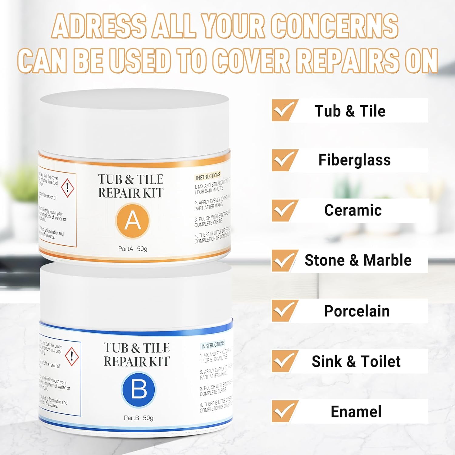EASY TO USE : Porcelain Repair Ki has very strong adhesion and can be barely detected, just after several simple steps. Water resistant, stop leaks and durable epoxy acrylic provides a high gloss finish to make surfaces look newer